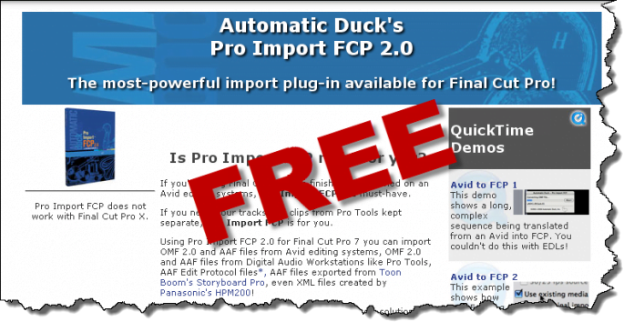 Starting today Pro Import AE, Pro Import FCP and Pro Export FCP (both versions, for FCP7 and FCPX) are available at no charge. You read this right. Free.